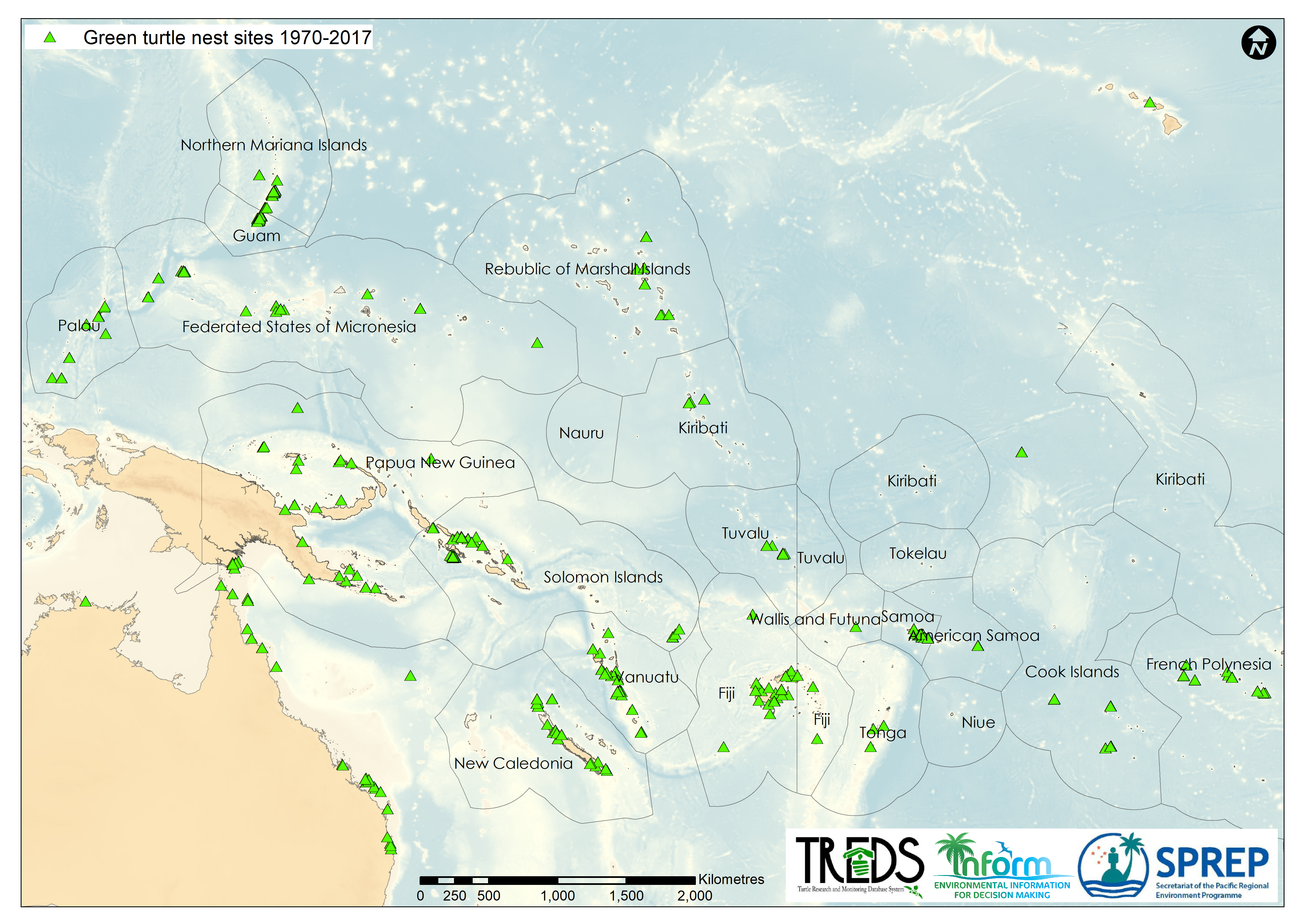 Green turtle nest sites 1970-2017